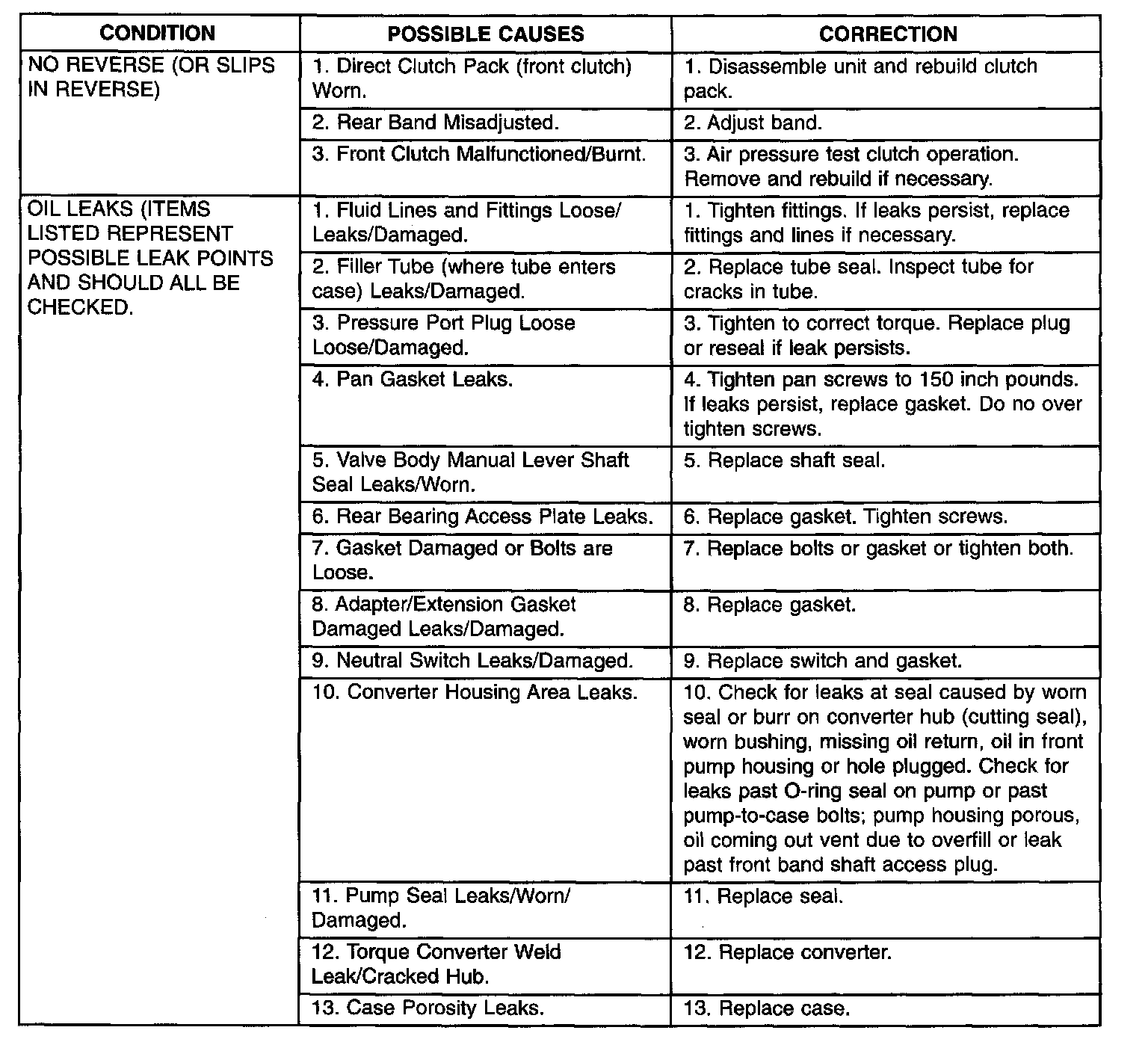 Diagnosis of transaxle problems should always begin with checking the easily accessible variables: