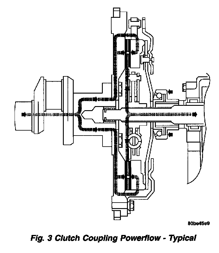 The clutch assembly is designed to transmit power from the engine to the manual transaxle. This is accomplished by the friction and clamping force generated when the spring loaded pressure plate locks the clutch disc to the flywheel (Fig. 3). The clutch disc, which is splined to the transaxle input shaft, transmits power until the center of the diaphragm spring is depressed, and the clamp force is removed from the disc.