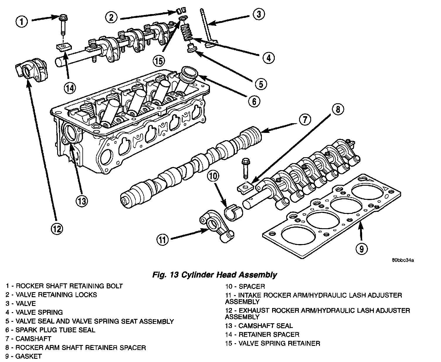 38. Remove cylinder head and gasket (Fig. 13).