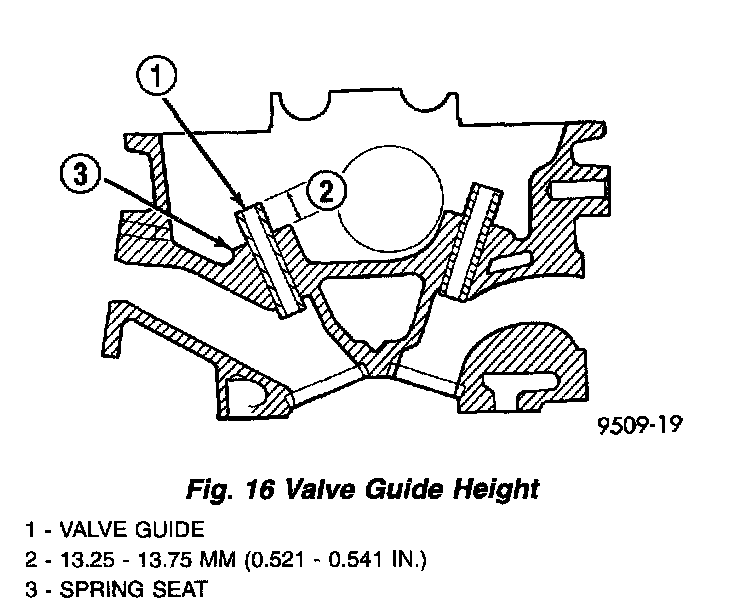 5. Check valve guide height (Fig. 16).