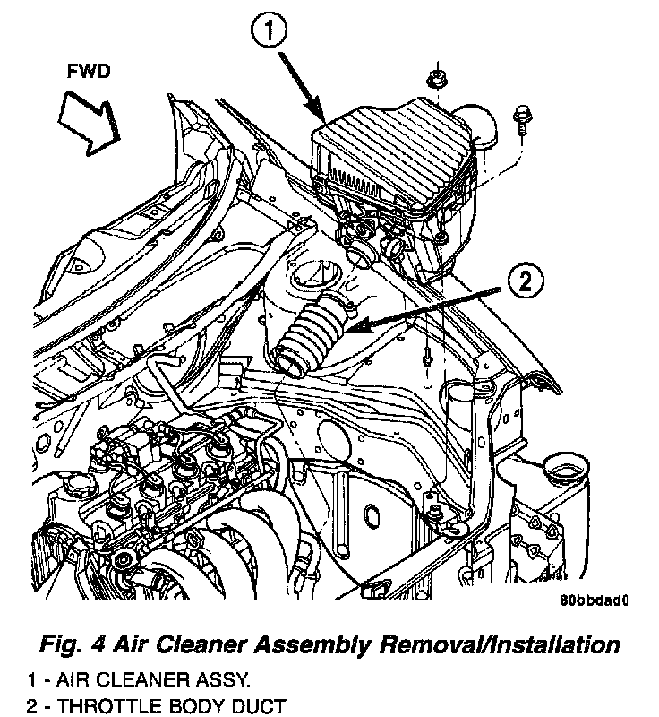 3. Remove air cleaner/throttle body assembly (Fig. 4)as follows: