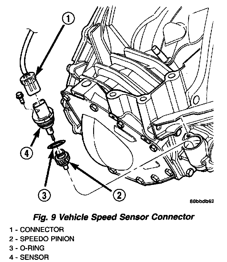 13. Disconnect the vehicle speed sensor connector (Fig. 9).