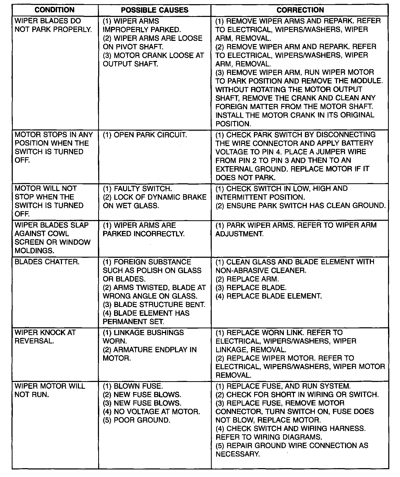 Wiper Motor: Testing and Inspection