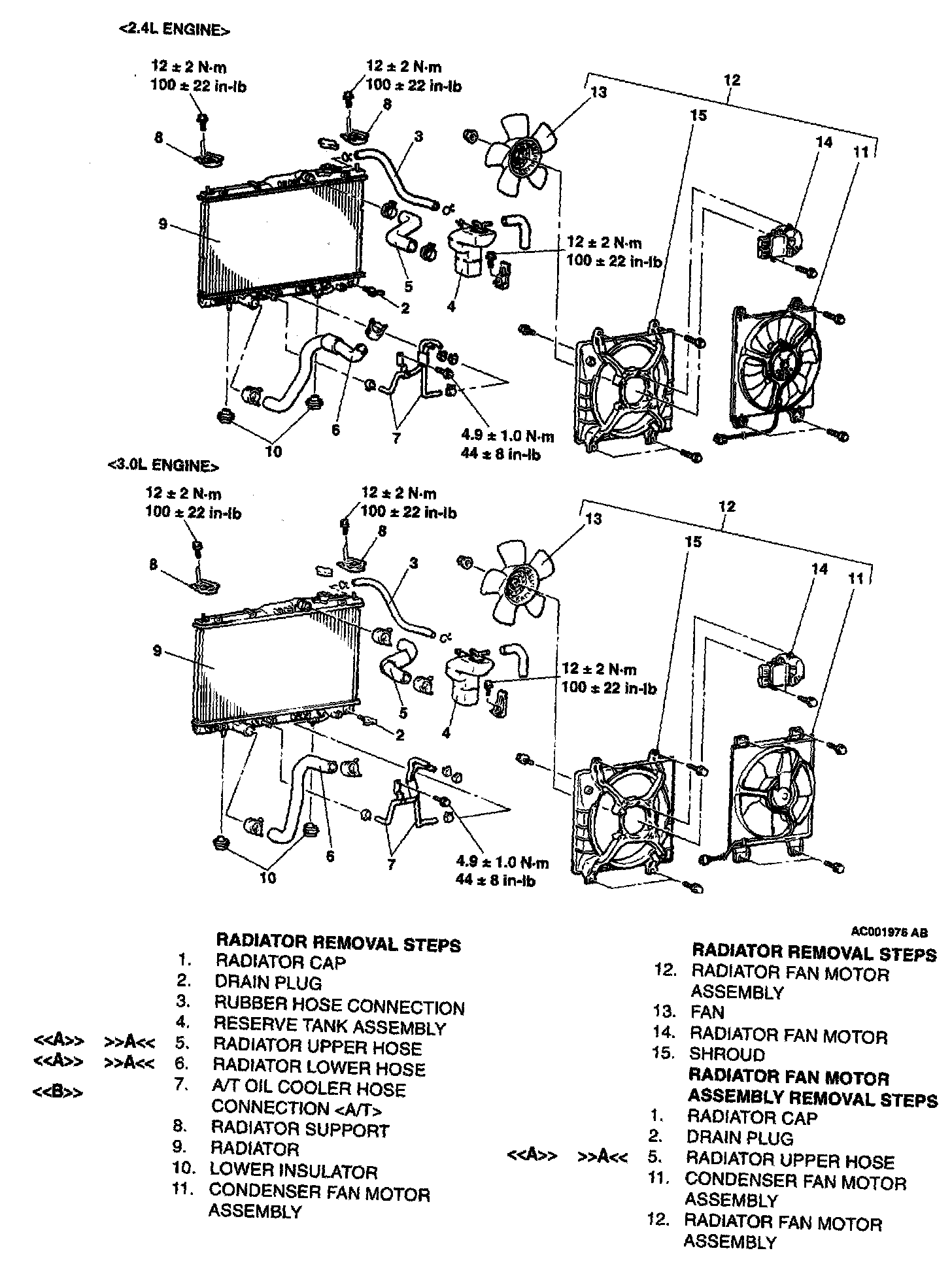 <> Radiator Upper Hose/Radiator Lower Hose Disconnection