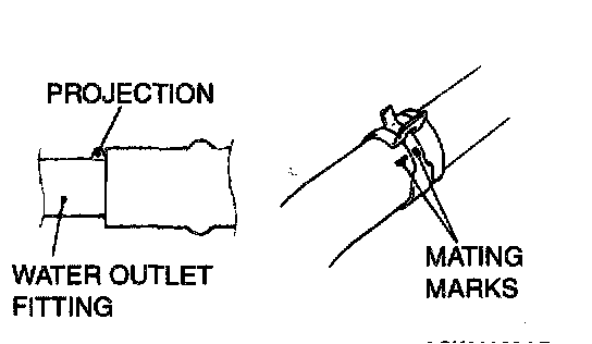 After making mating marks on the radiator hose and the hose clamp, disconnect the radiator hose.