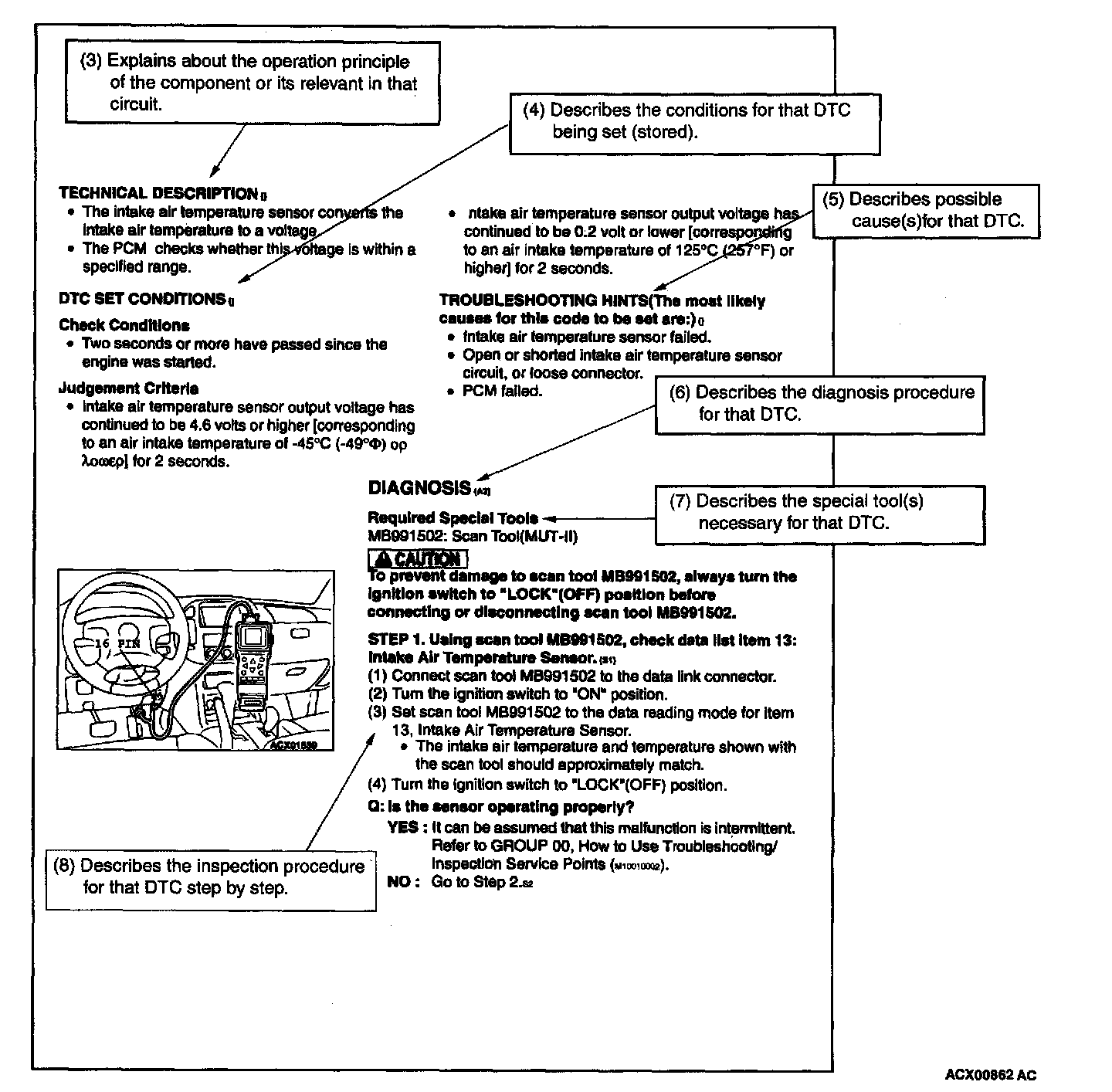 The causes of many of problems occurring in electric circuitry are generally the connectors, components, the ECU and the harnesses between connectors, in that order. These inspection procedures follow this order. They first try to discover a problem with a connector or a defective component.