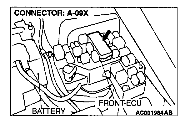 STEP 5. Check the wiper motor connector A-03 and front- ECU connector A-09X for damage.