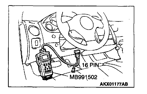 1. Connect scan tool MB991502 to the data link connector.