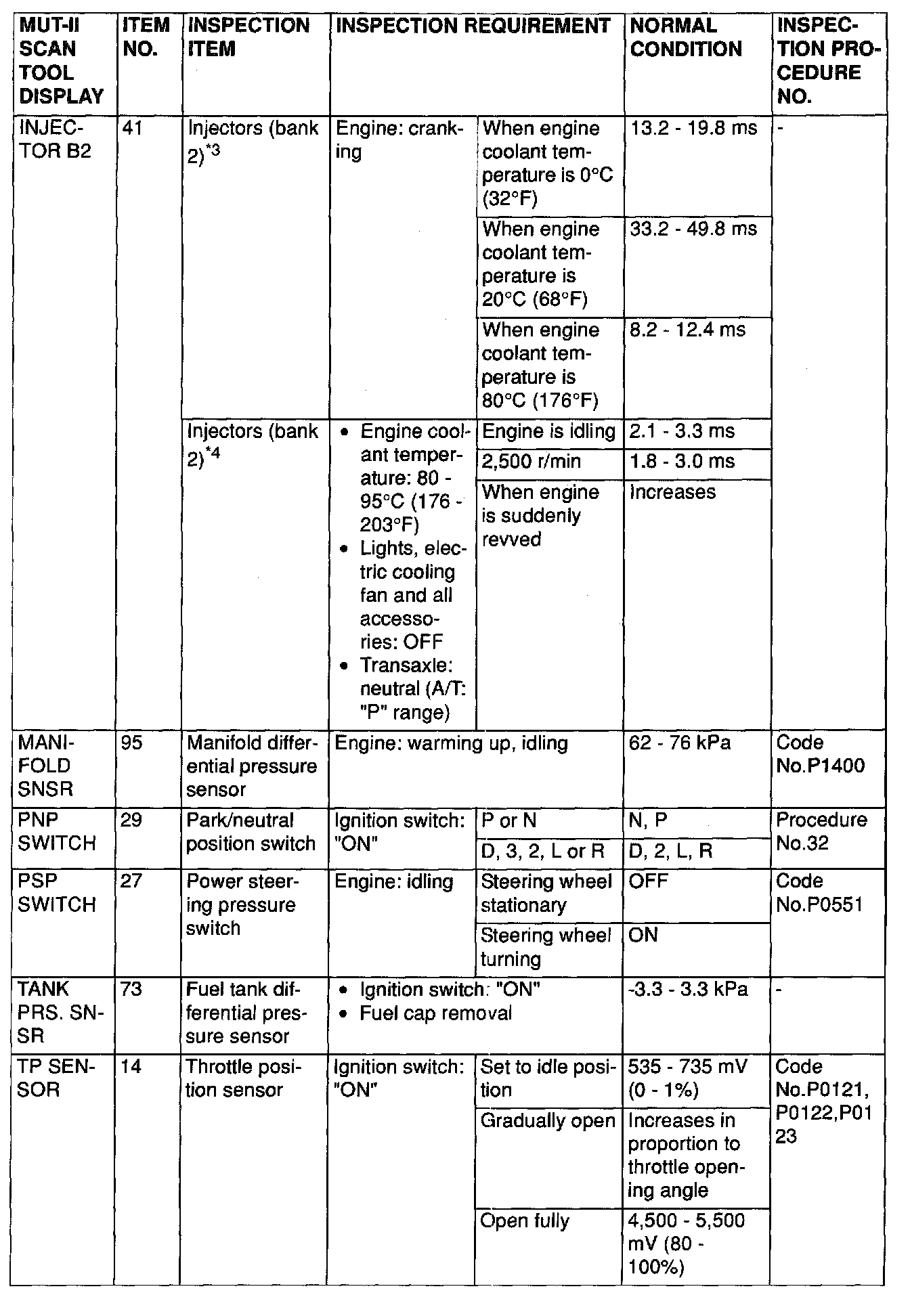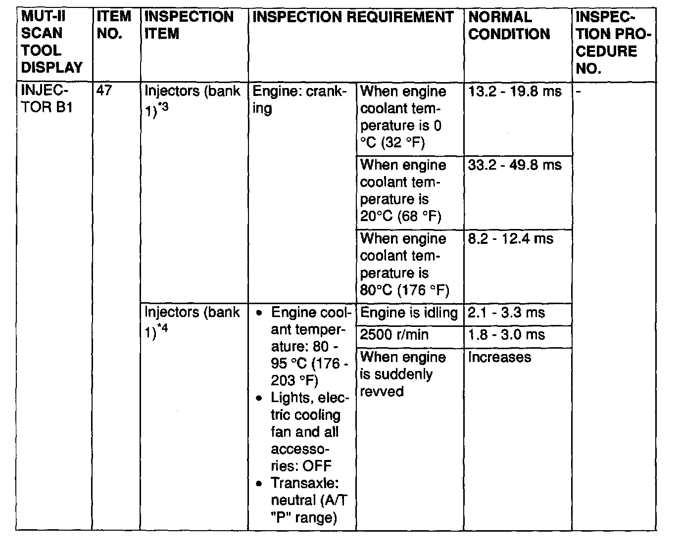NOTE: *4: In a new vehicle [driven approximately 500 km (311 mile) or less], the injector drive time is sometimes 10% longer than the standard time.