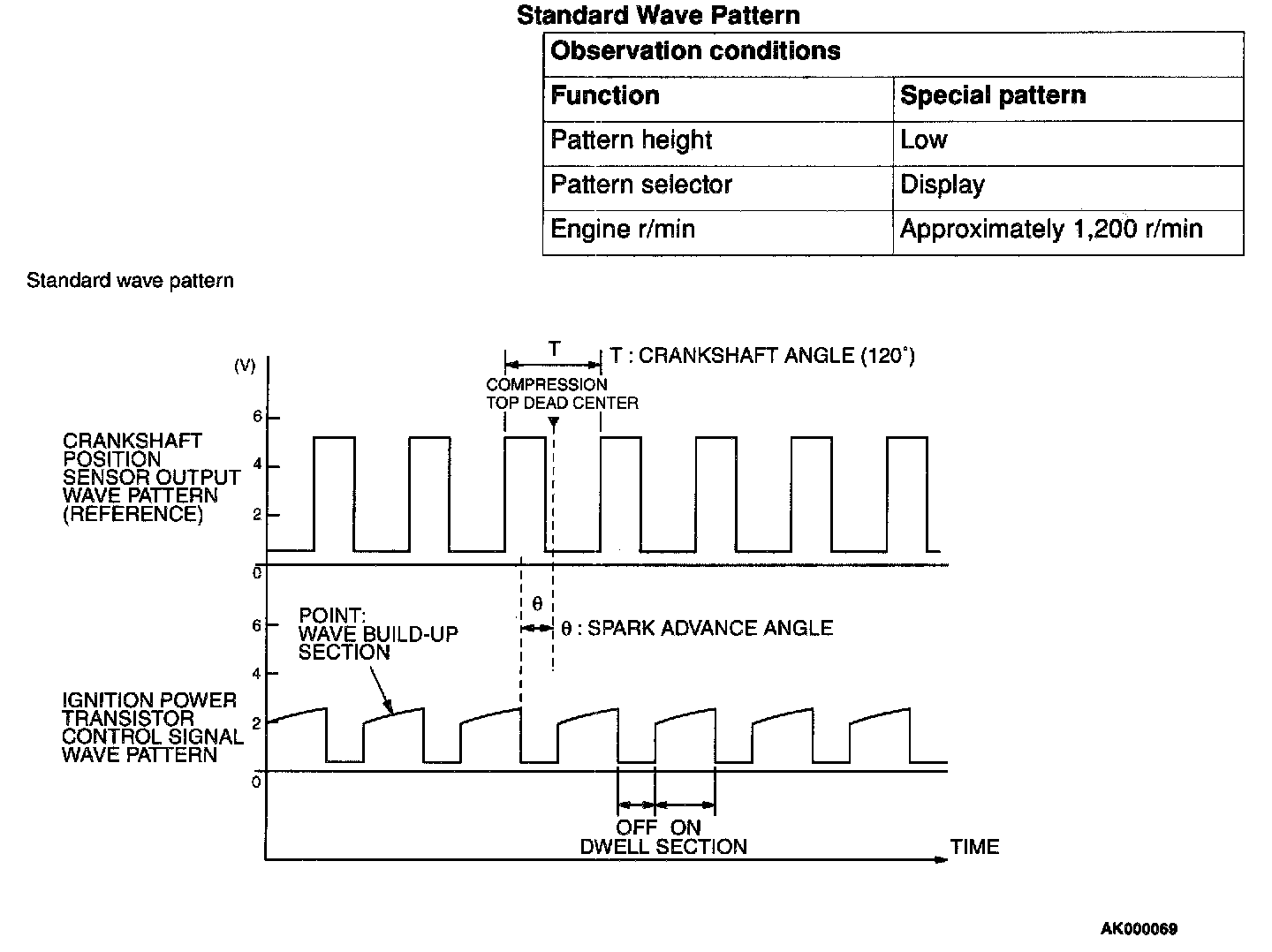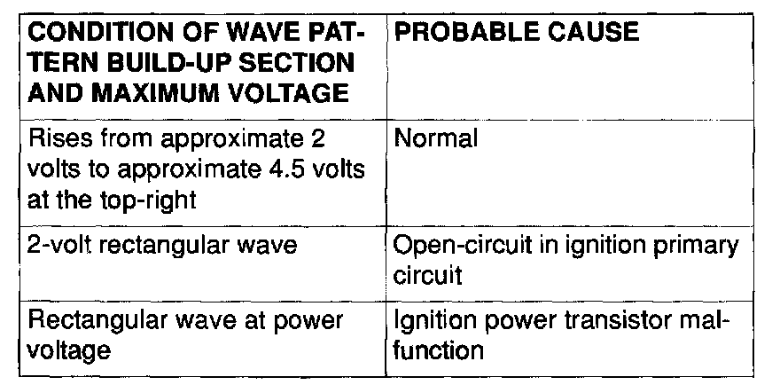Point: Condition of wave pattern build-up section and maximum voltage (Refer to abnormal wave pattern examples 1 and 2).