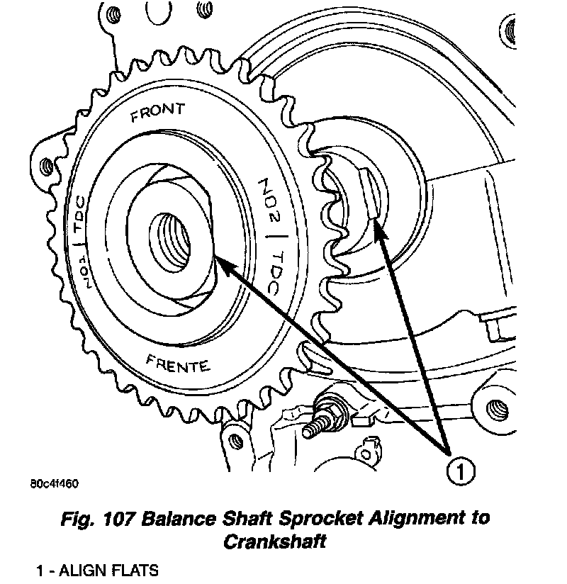 4. Align flat on balance shaft drive sprocket to the flat on crankshaft (Fig. 107).