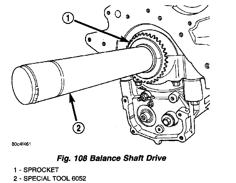 5. Install balance shaft drive sprocket on crankshaft using Special Tool 6052 (Fig. 108).