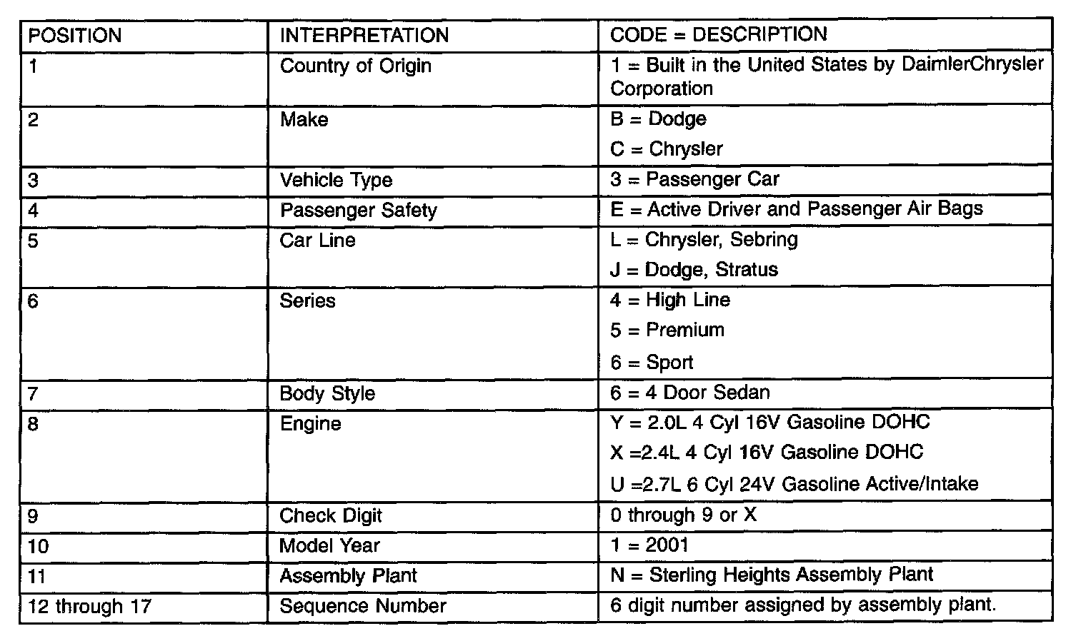 VIN Code Breakdown: