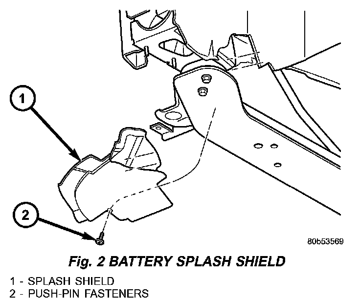 Remove the three push-pin fasteners and remove the splash shield (Fig. 2).