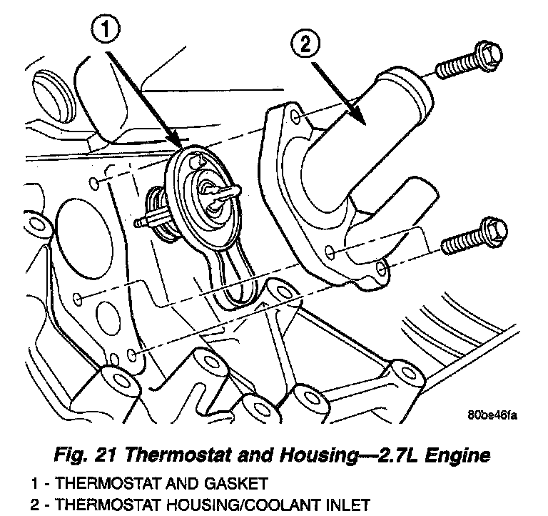 2. Install thermostat and gasket into the thermostat housing.