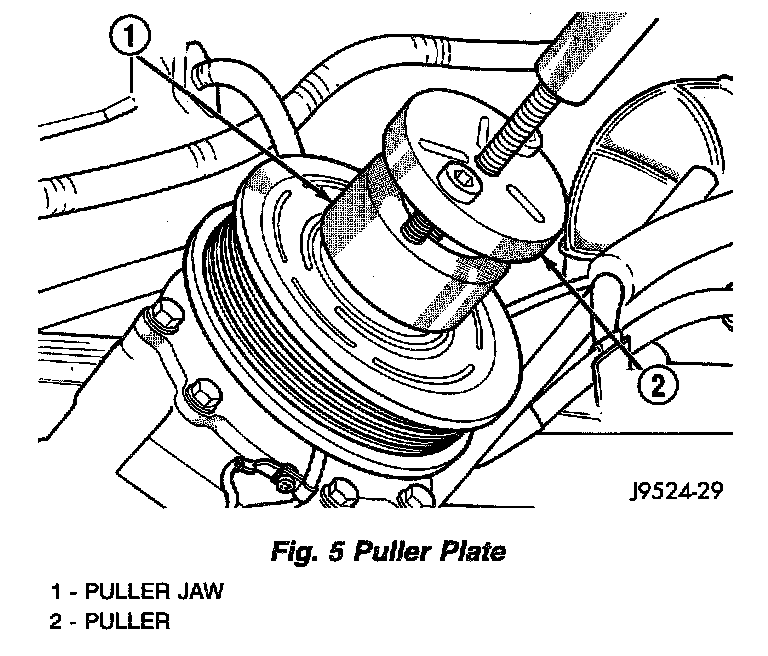 NOTE: Refrigerant does not have to be reclaimed for compressor clutch, pulley or coil replacement. The compressor clutch can be serviced in the vehicle.