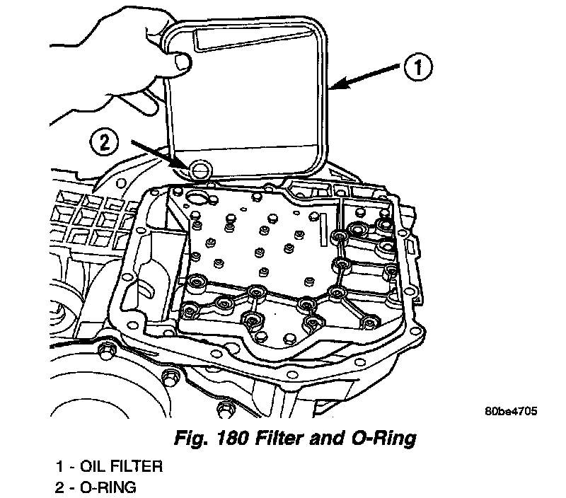 3. Install a new filter and O-ring on bottom of the valve body (Fig. 180).