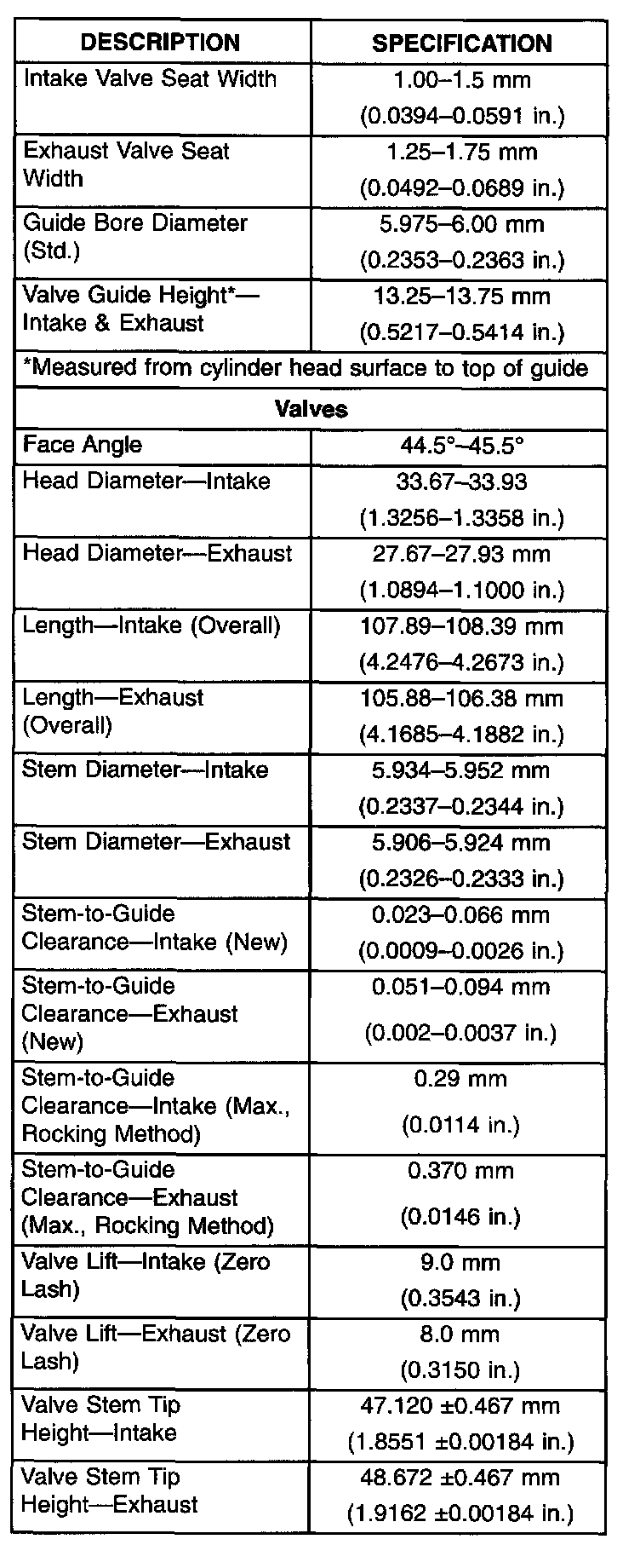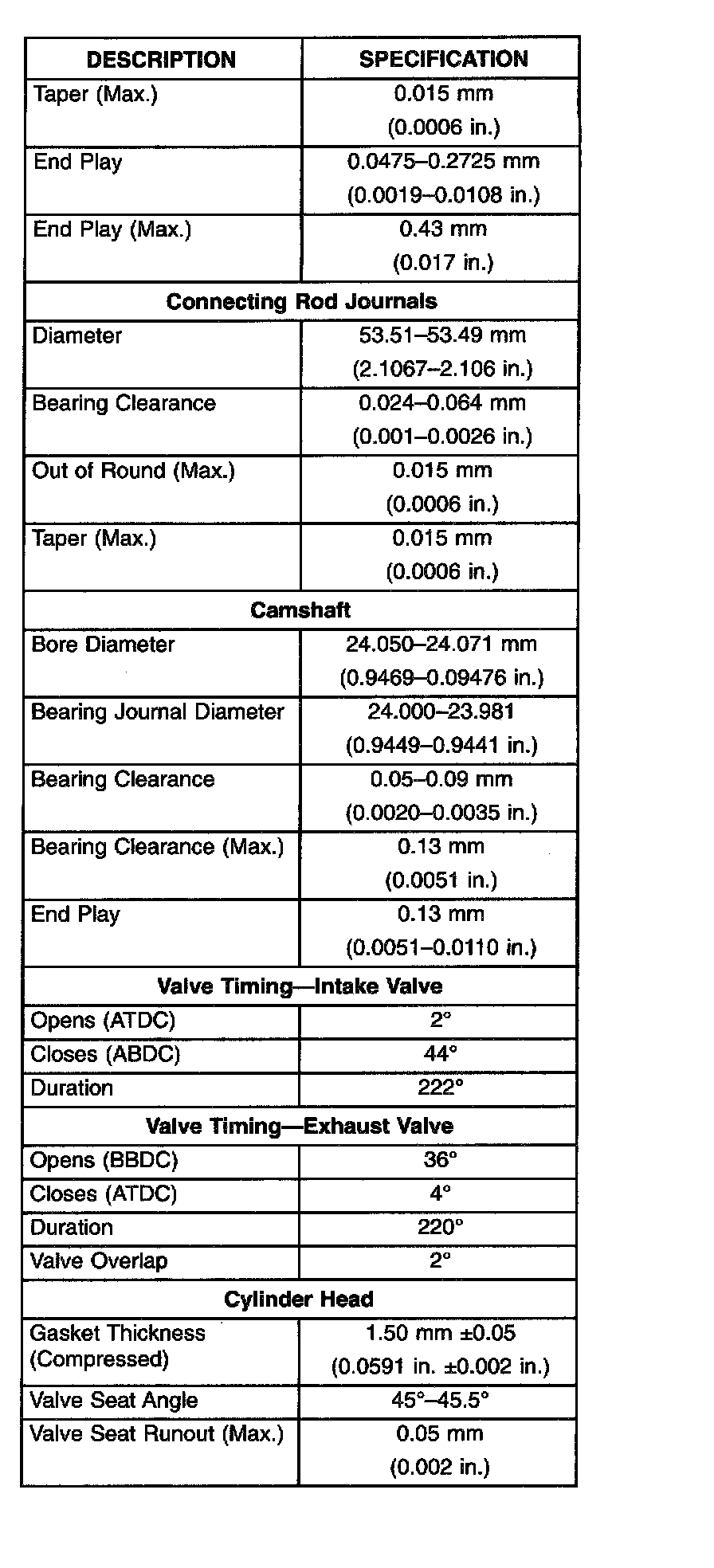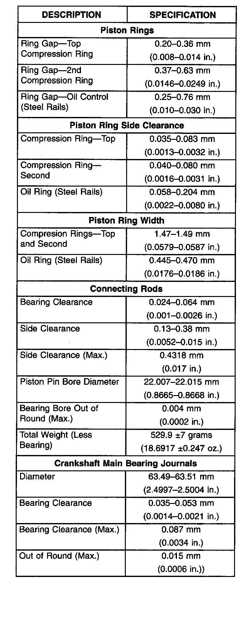 Engine Specifications