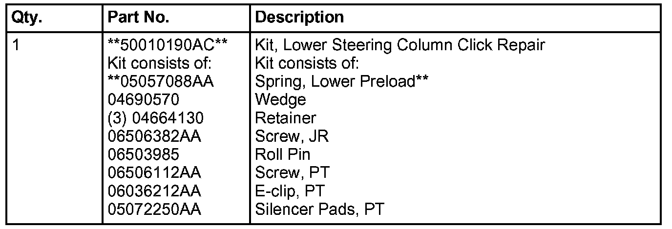 This bulletin involves aligning the steering column or removing the steering column and installing a new steering column shaft, revised wedge, **revised spring** and seating the lower bearing.