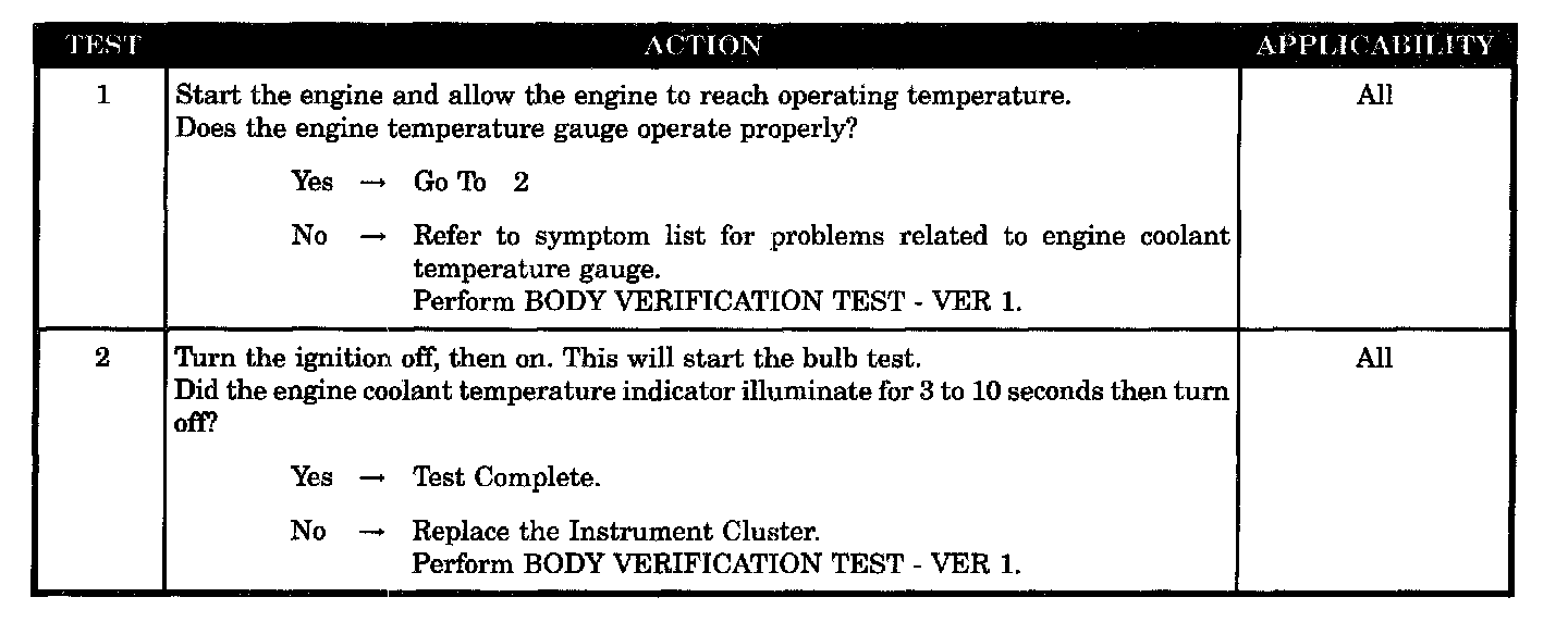 ENGINE COOLANT TEMPERATURE INDICATOR NOT OPERATING PROPERLY