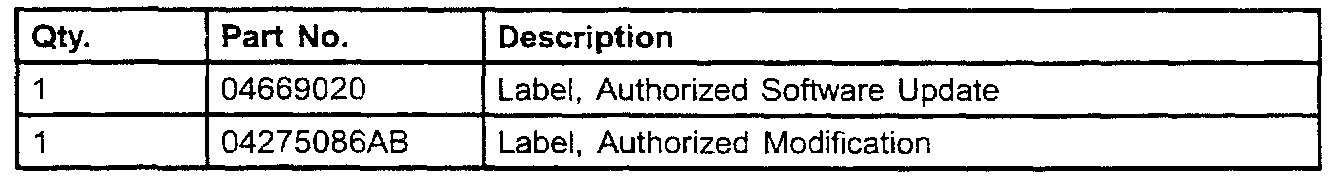2. Type the necessary information on the "Authorized Software Update Label" p/n 04669020 (Fig. 1). Attach the label to the PCM and/or TCM as necessary and cover the label(s) with the clear plastic overlay.