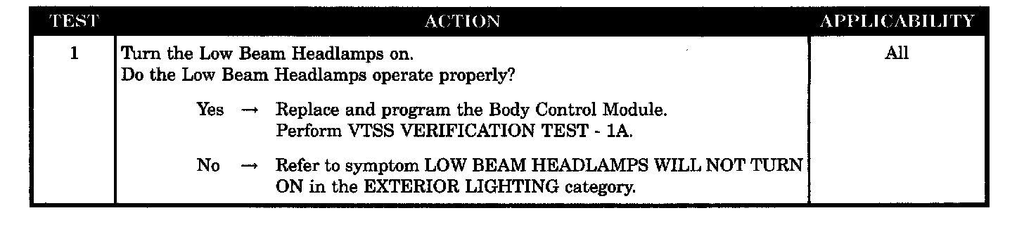 Verify low beam operation