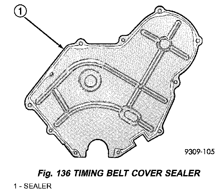 8. Remove the stamped steel cover (Fig. 135). Do not remove the sealer on the cover, it is reusable (Fig. 136). If some sealer is missing use Mopar Engine RTV GEN II to replace the missing sealer.