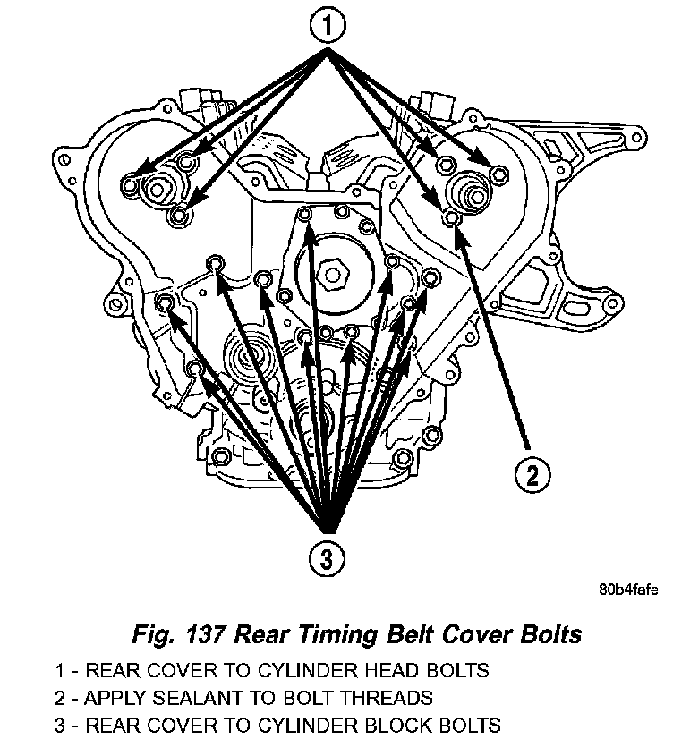 2. Remove rear timing belt cover bolts (Fig. 137).