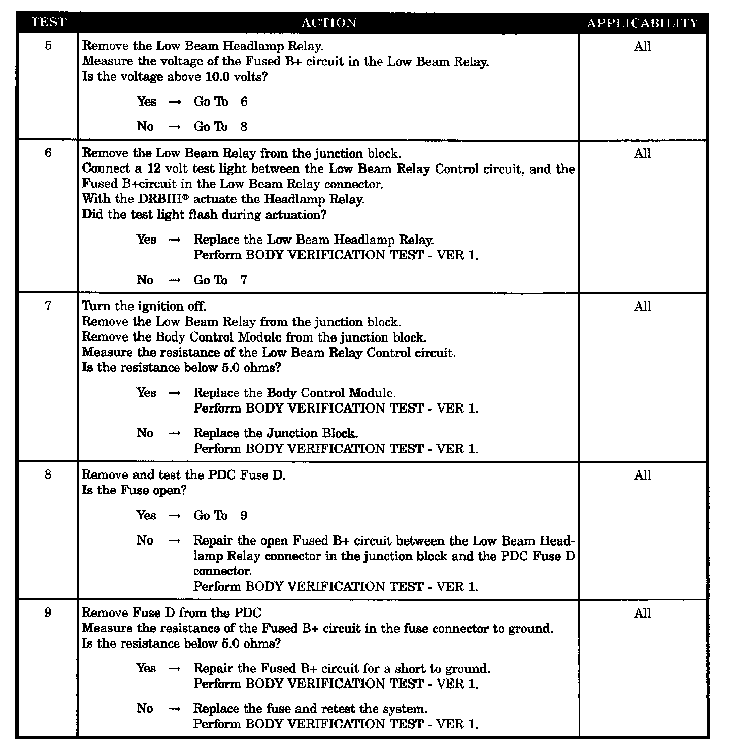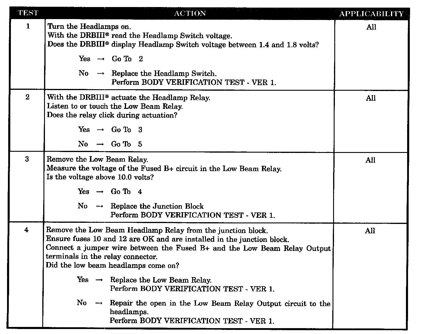 LOW BEAM HEADLAMPS WILL NOT TURN ON