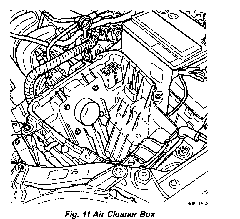 6. Install air cleaner element on to throttle body and push towards the throttle body and past lip in air cleaner box bottom (Fig. 12).