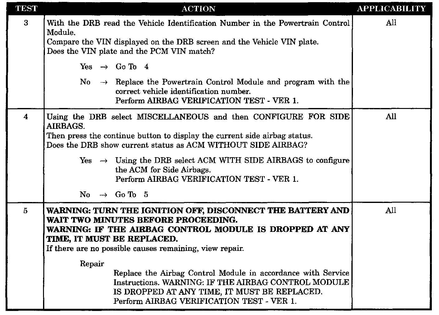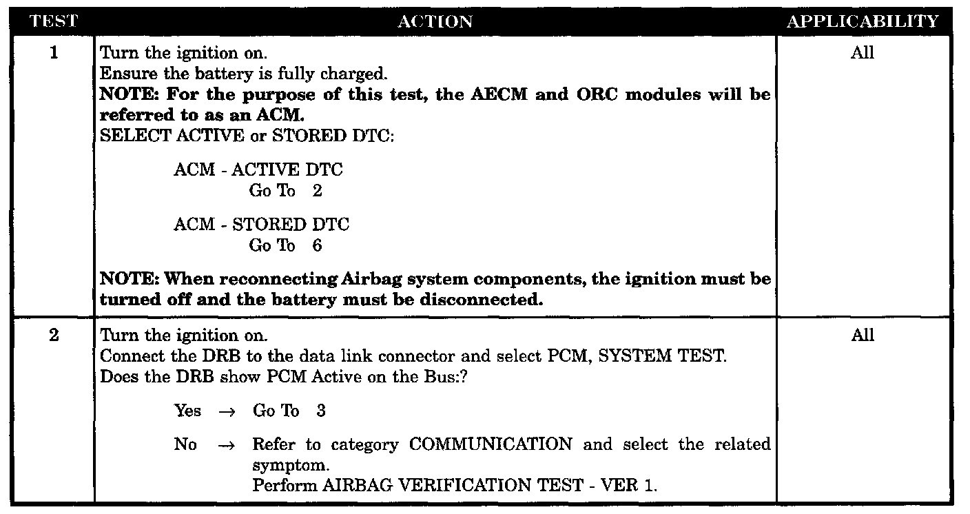 With ignition ON, the ACM monitors the PCI Bus for a message containing an "A" in the 4th position of the VIN. This character identifies the type of safety equipment and should match the VIN. The PCM transmits the VIN every 13.76 seconds.