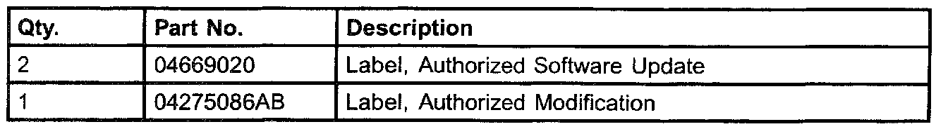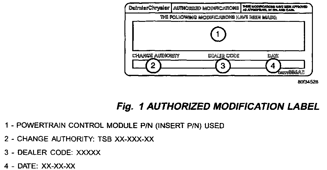 4. Type the necessary information on the "Authorized Modification Label" p/n 04275086AB and attach near the VECI label (Fig. 2).
