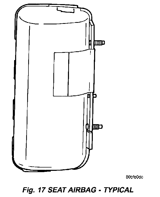 The left and right seat airbags are located in the outboard edge of the front seat backs. The airbag contains a bag, an inflator (small canister of highly compressed gas), and a mounting bracket. The seat airbag cannot be repaired and must be replaced if deployed or in any way damaged.