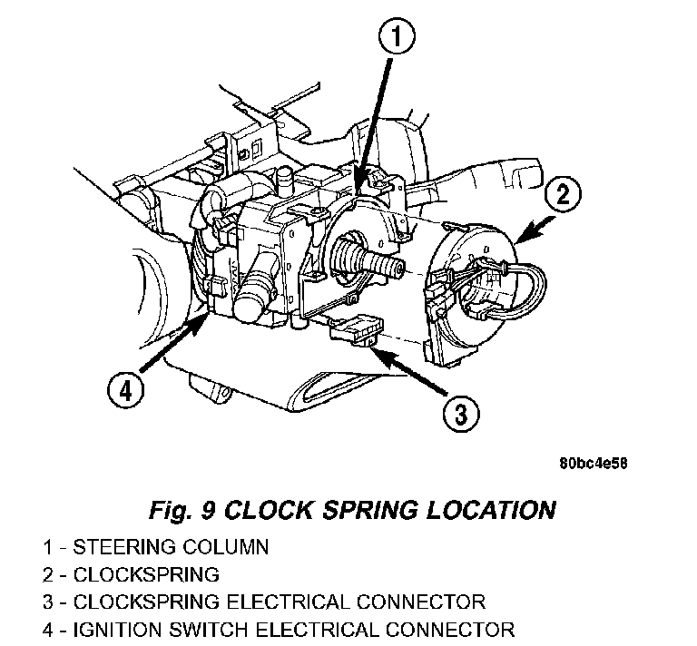 The clock spring is mounted to the steering column behind the steering wheel. The clock spring is used to maintain a continuous electrical circuit between the wiring harness and the: