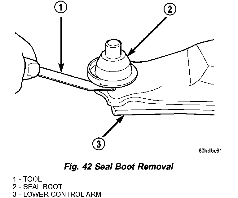 1. Using a screwdriver or other suitable tool, pry the seal boot off of the ball joint (Fig. 42).