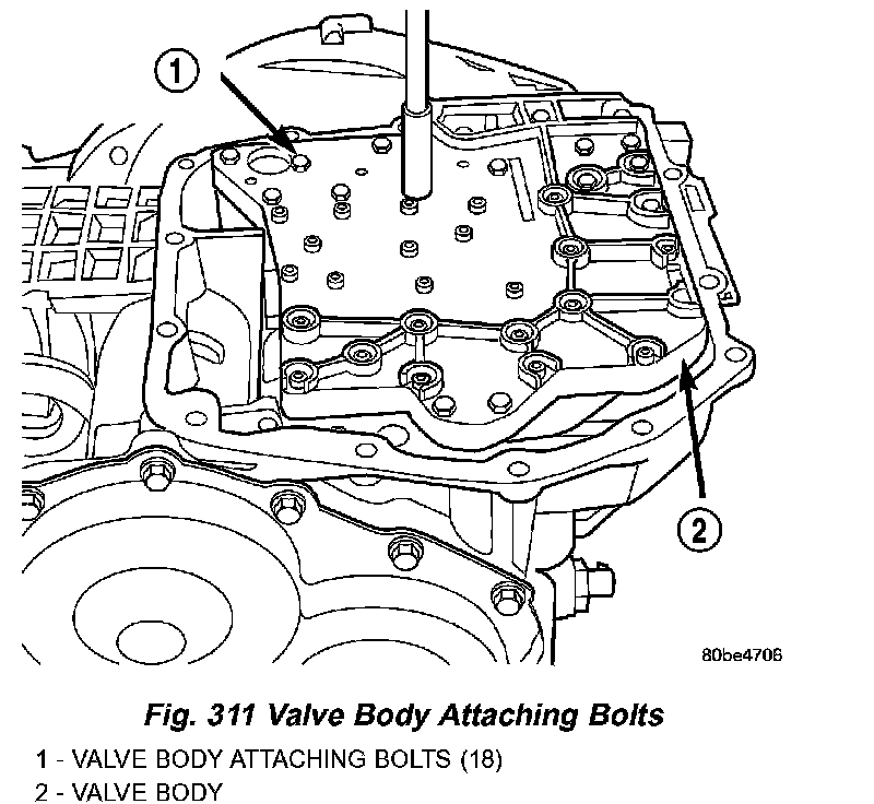 10. Remove the valve body-to-transaxle case bolts (Fig. 311).