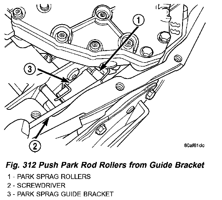 11. Remove park rod rollers from guide bracket and remove valve body from transaxle (Fig. 312) (Fig. 313).