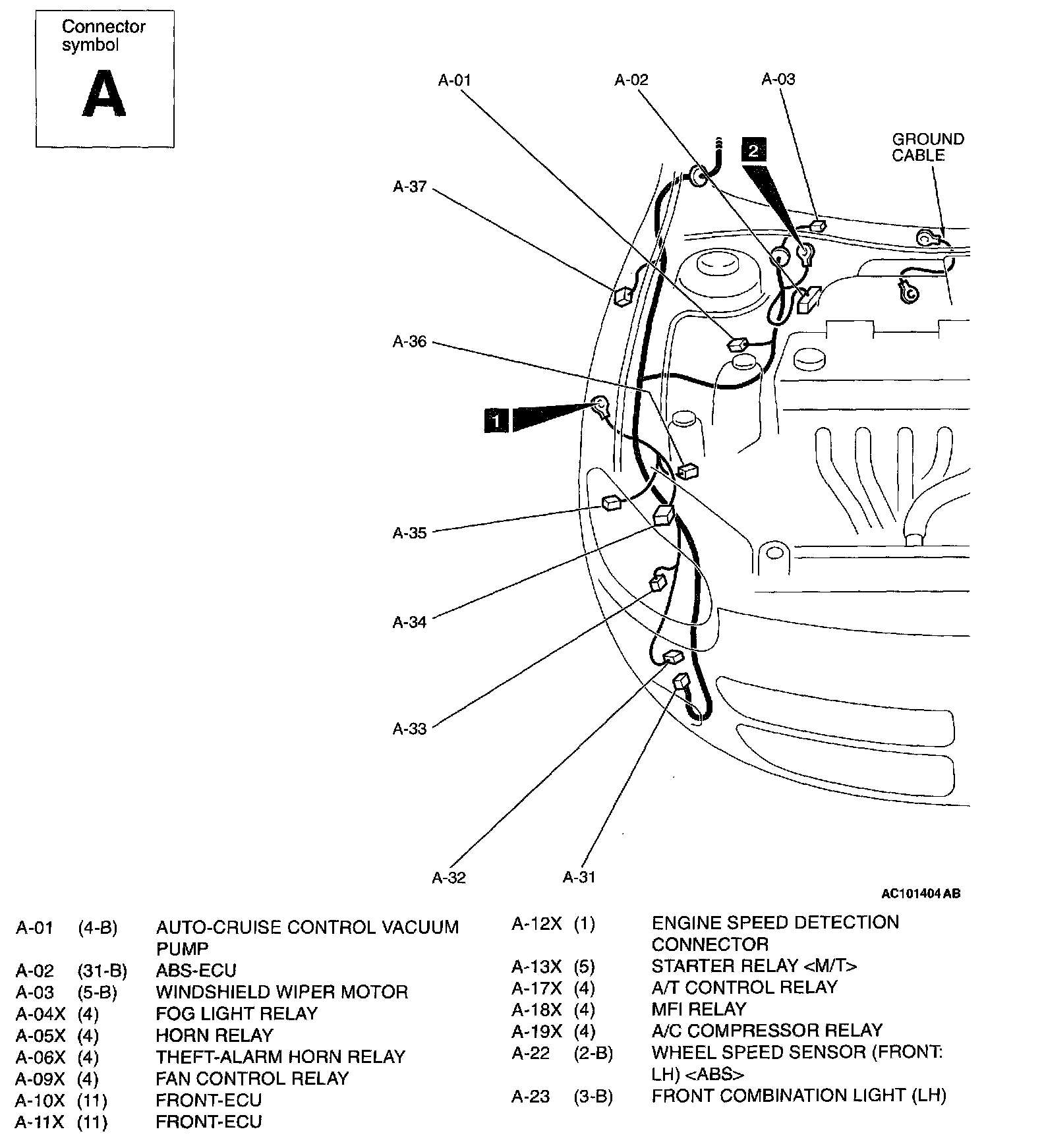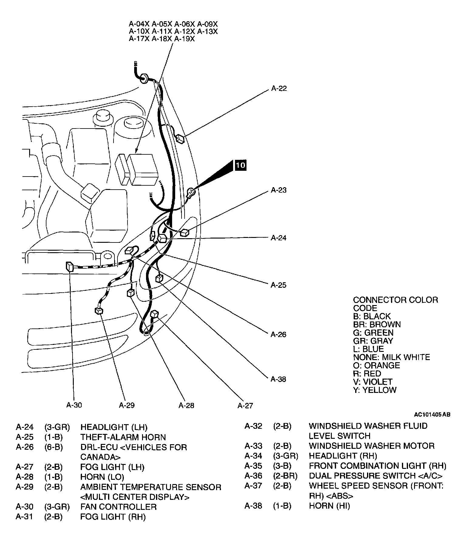 Engine Compartment - A Connector [ 01(4-B) Thru 23(3-B) ]: