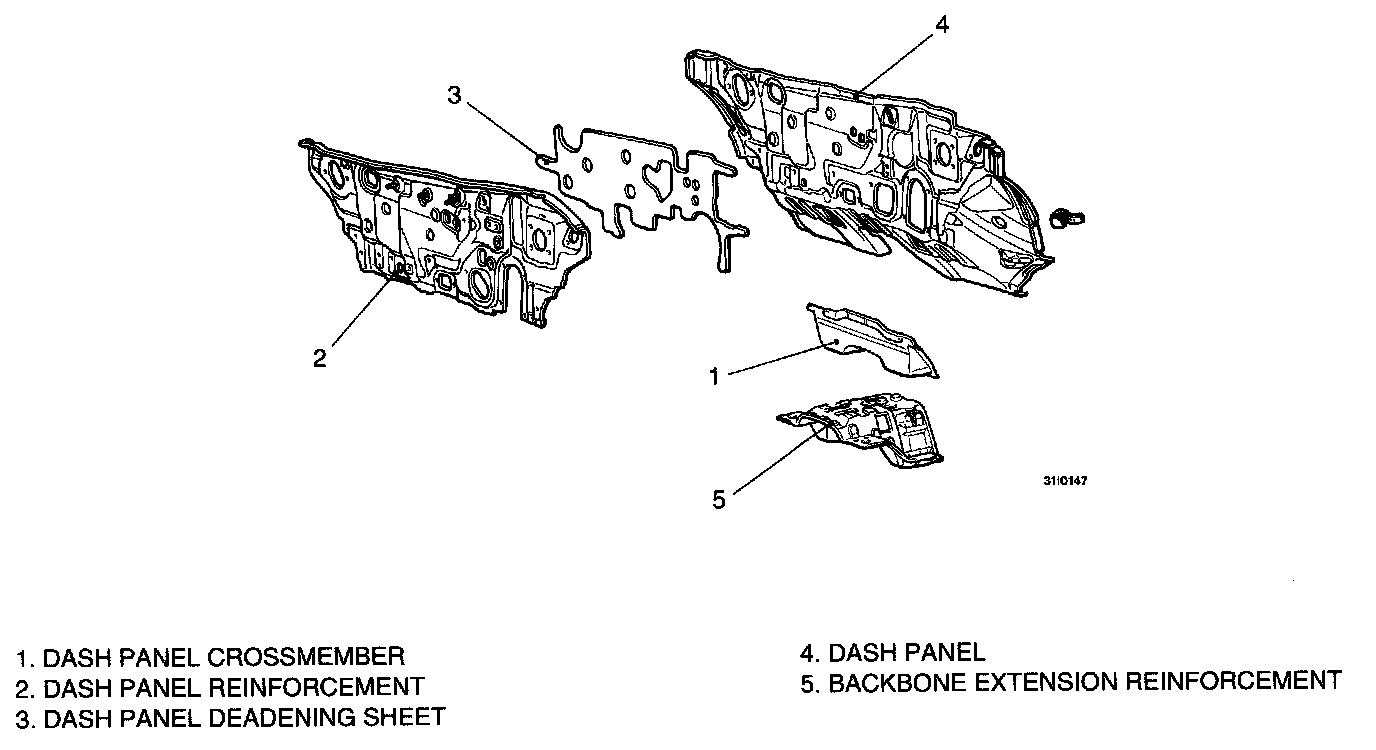 A deadening sheet (foam rubber sheet) has been placed in between the dash panel and the dash panel reinforcement to create a double-walled structure which improves sound insulation.