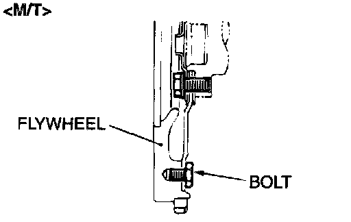 CAUTION: Do not remove the flywheel mounting bolt shown by the arrow. If this bolt Is removed, the flywheel will become out of balance and damaged.