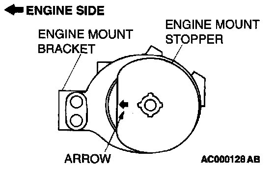 Clamp the engine mount stopper so that the arrow points in the direction as shown in the diagram.