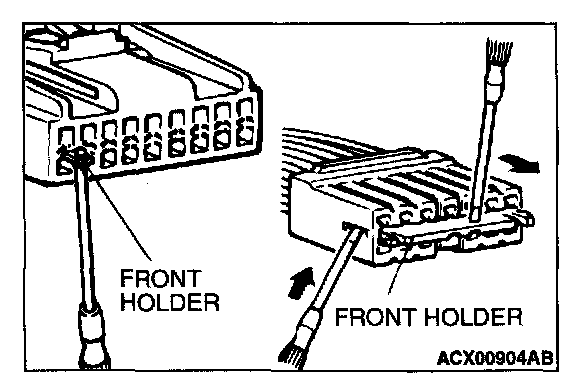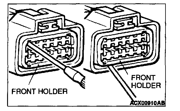 2. If the connector is disconnected for checking and the facing part is the female pin side, the harness for checking the contact pressure of connector pins (MB991219) should be used.