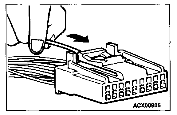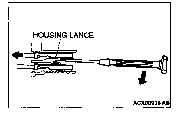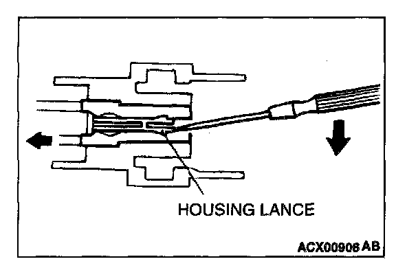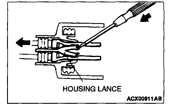 Loosely engaged terminals can be repaired by removing the female terminal from the connector housing and raising its lance to establish better engagement. Removal of the connector terminal used for MFI and INVECS-II A/T control circuit can be done in the following manner.