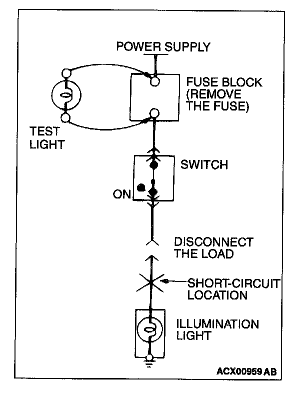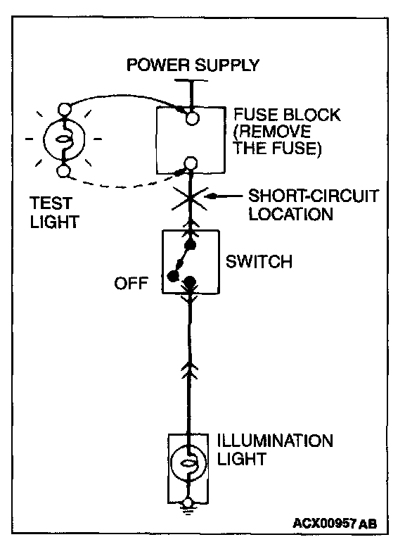 STEP 1. Remove the blown fuse and connect the test light across the fuse terminals (Circuit switch: OFF).