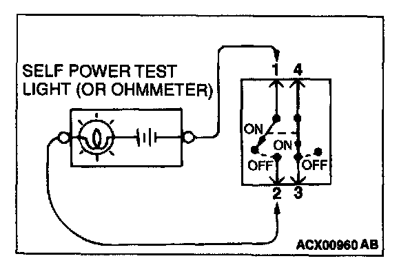 2. When the switch is the "ON" position and the contact points of terminals 3 and 4 are connected, the self-powered test light should come on or the ohmmeter should read 0 ohm.