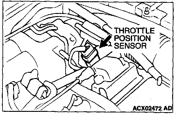 1. Disconnect the throttle position sensor connector, and connector the special tool MB991348 in between. (All terminals should be connected.)