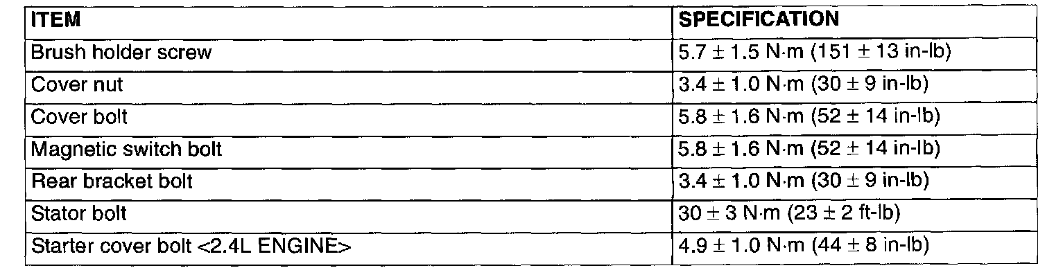Fastener Tightening Specifications: