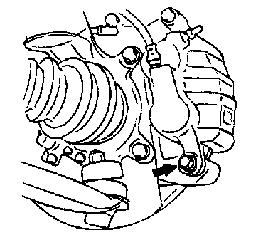 2. Remove the guide pin. Lift the caliper assembly and secure it with a wire.