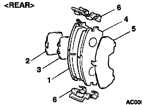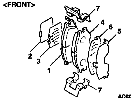 ^ Whenever a pad must be replaced, replace both LH and RH wheel pads as a set to prevent the vehicle from pulling to one side when braking.
