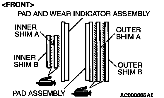 - Pad assembly and outer shim A contact surface